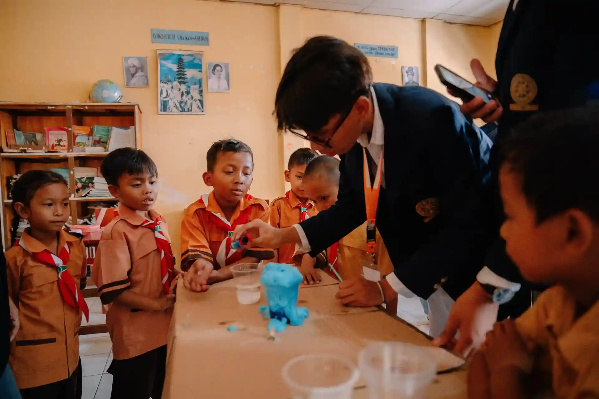 Instead of gathering students in one place, volunteers visited each class to deliver teaching materials and short lessons about waste. This approach allowed the session to feel more personal and accessible for the students.