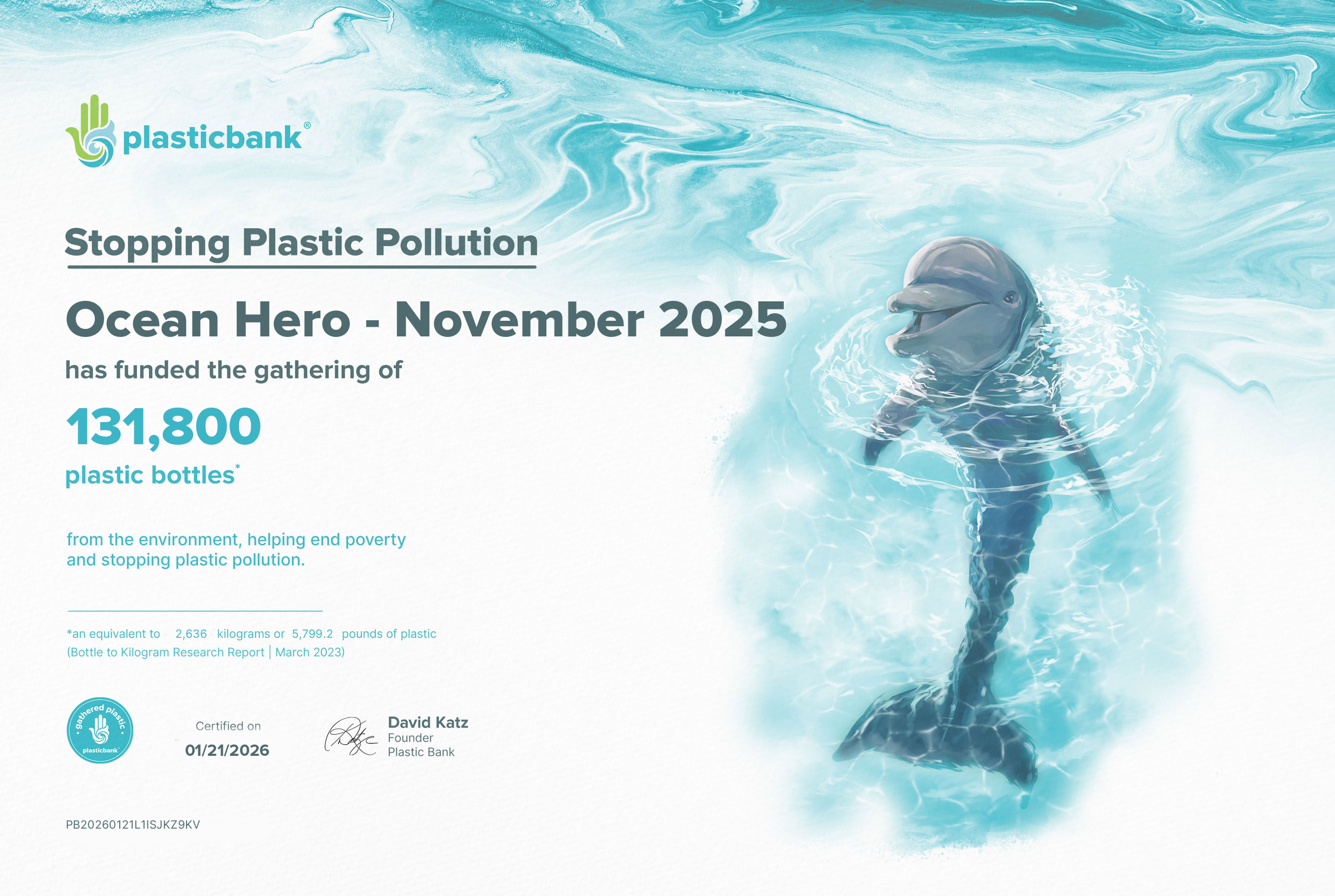 Plastic BankEvery month, we publish information on the "About Us" page that details how much ocean-bound plastic we were able to collect. Visit this page to learn more about OceanHero.