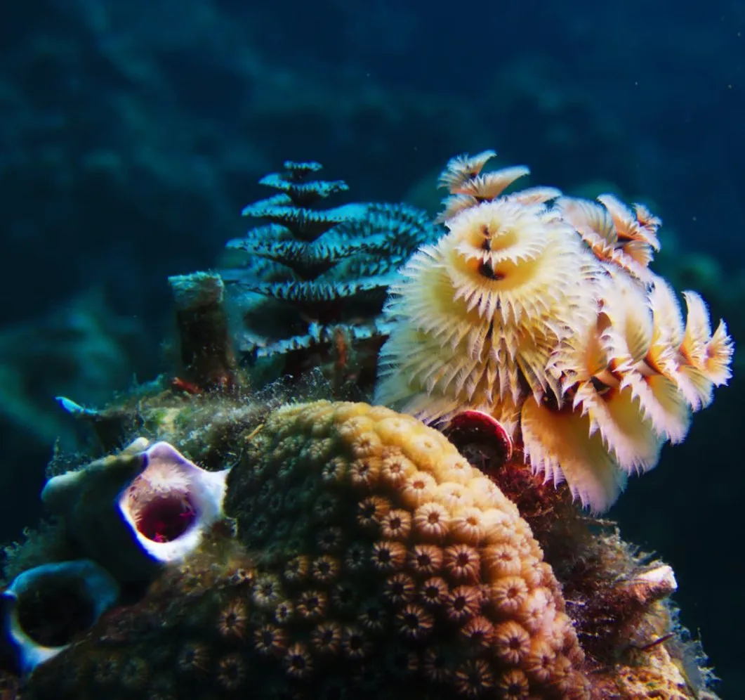 If you've ever seen a photograph of a Christmas tree worm, your first reaction was probably the same as everyone else's: this can't be real. The creature looks like it was designed by a jewelry maker obsessed with symmetry. Two perfect spirals, one red and one yellow, sometimes mixed with shades of blue or purple, arranged with mathematical precision. The spirals are actually feeding crowns, structures packed with ciliated tentacles that filter food from the water. When you approach the worm, the spirals retract in a fraction of a second, disappearing into the reef as if they were never there.