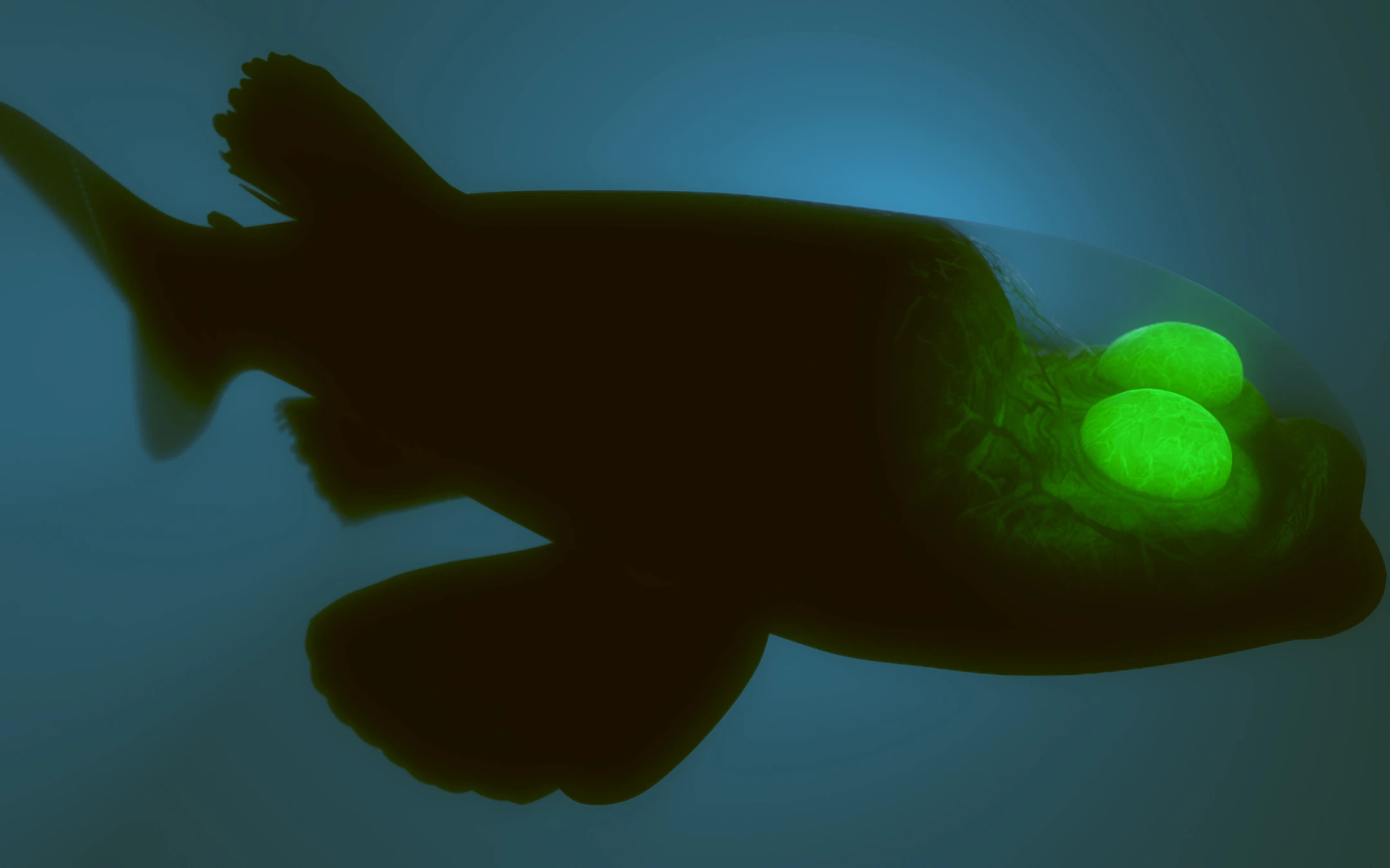 Deep-sea anglerfish are known for their bioluminescent lure, used to attract prey in total darkness. Females are much larger than males, which in some species permanently attach to females.